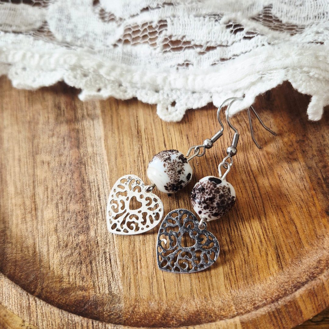 One of a kind oorbellen zilver met Indiase kralen en filigraan hartje