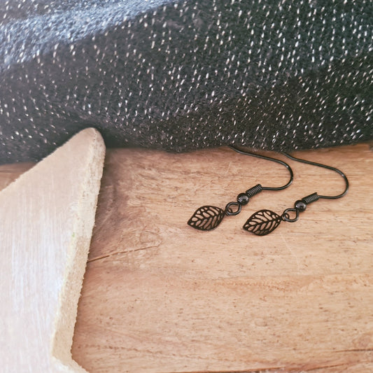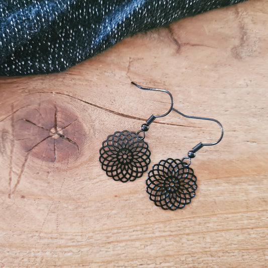 Zwarte korte hangertjes met bohemian look in fijn patroon