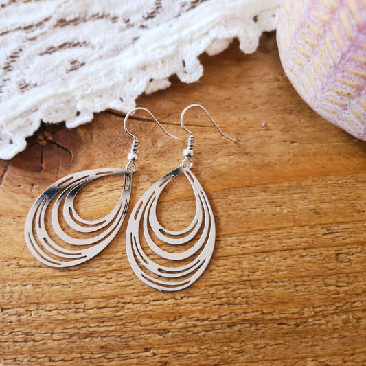 Gedraaide zilverkleurige druppel oorbellen – elegant met een speelse twist