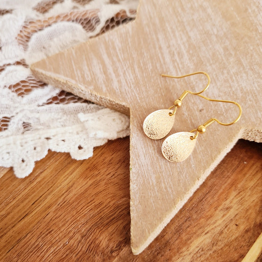 Kleine gouden druppeloorbellen met verfijnde afwerking in goud