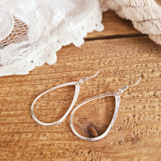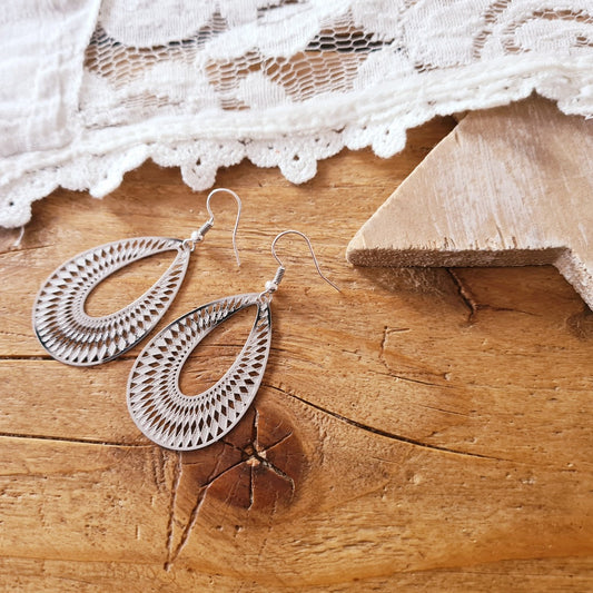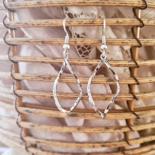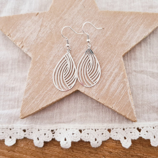 Zilveren druppel oorbellen met elegant golvend patroon