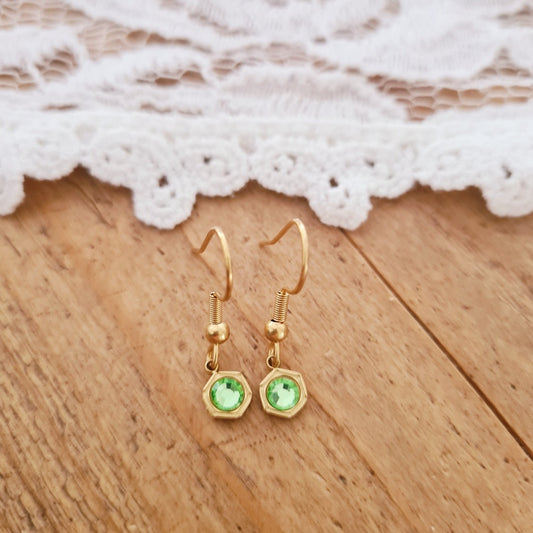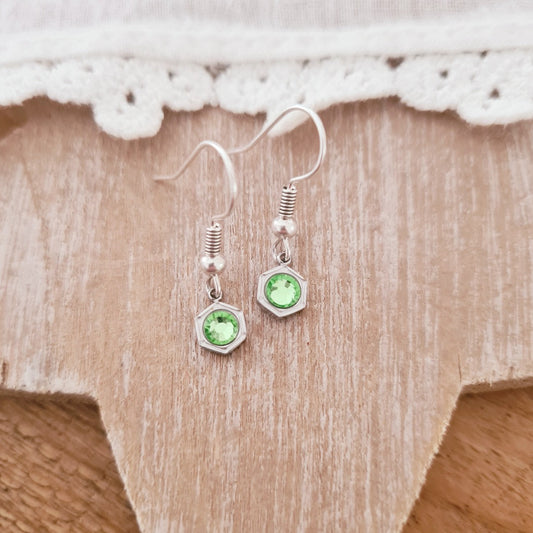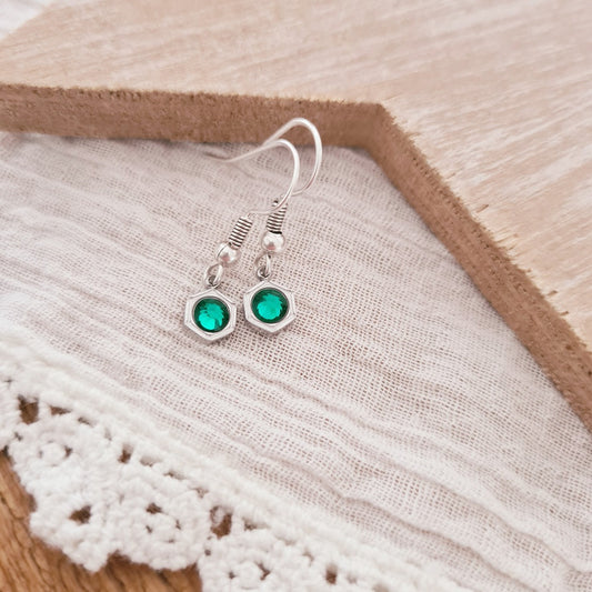 Zilverkleurige geboortesteenoorbellen met emerald groene steen voor Mei