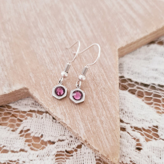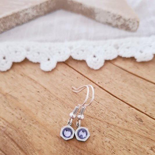 Zilverkleurige geboortesteenoorbellen met paarse steen voor Februari
