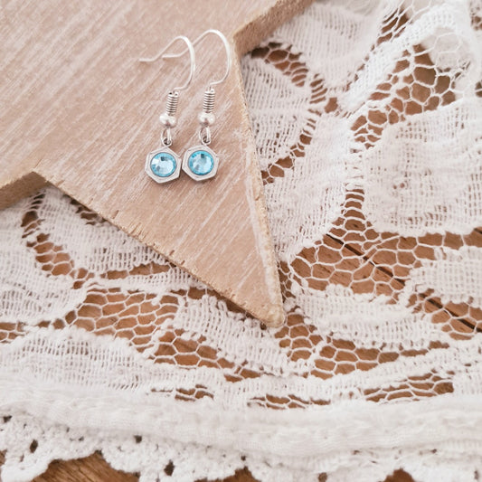 Zilverkleurige geboortesteenoorbellen met lichtblauwe steen voor Maart