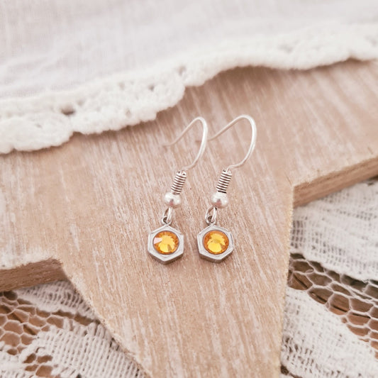 Zilverkleurige geboortesteenoorbellen met okerkleurige steen voor November