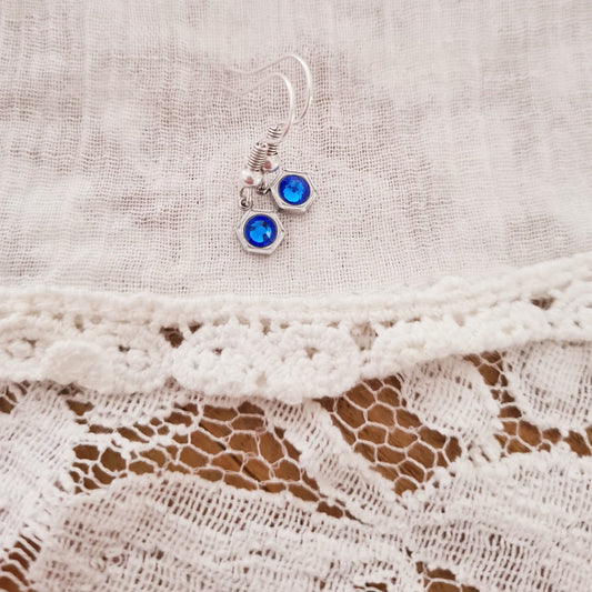 Zilverkleurige geboortesteenoorbellen met saffierblauwe steen voor September