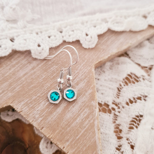 Zilverkleurige geboortesteenoorbellen met blauwe steen voor December