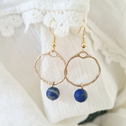 Blauwe druppeloorbellen van kristalglas in goud of zilver