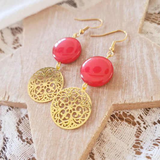 Lange oorbellen met Picasso jaspis en goudkleurige afwerking