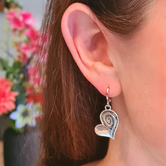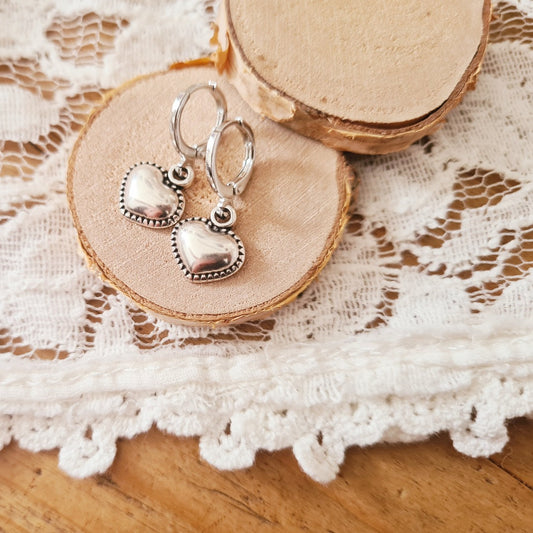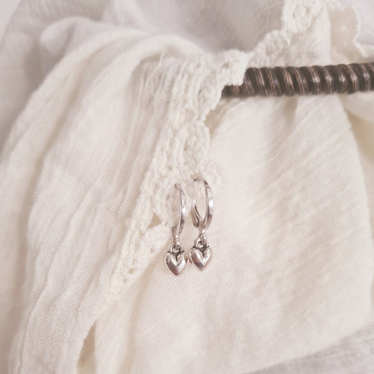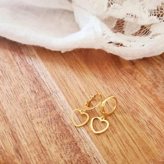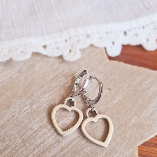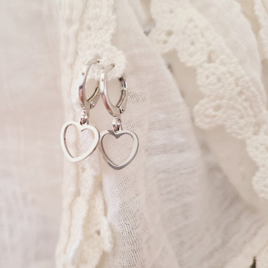 Zilverkleurige ringetjes met open hartvormig bedeltje