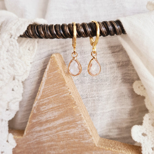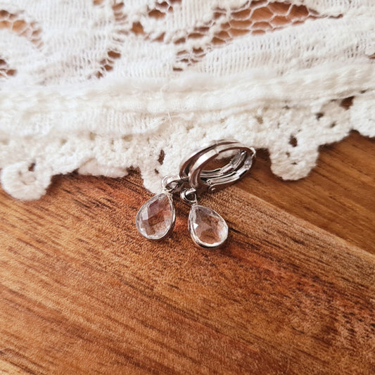 Ringetjes goud met druppelvormig kristalglas steentje transparant