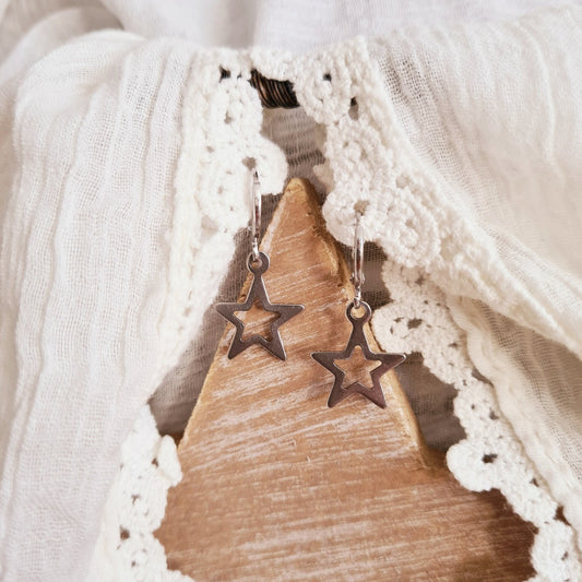 Zilverkleurige oorbellen met open stervormig bedeltje