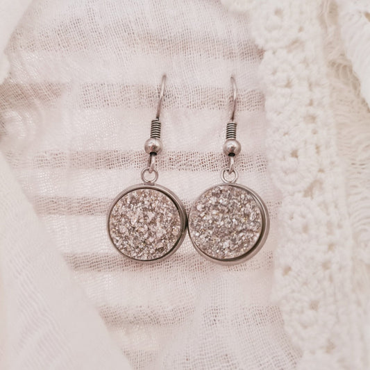 Zilverkleurige oorringen van stainless steel met schildpadbedel