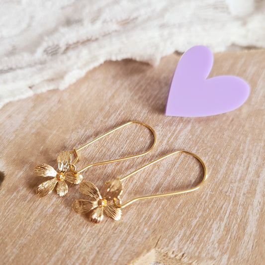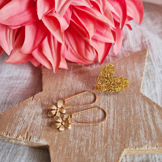 One of a kind lange oorbellen met blauwe kralen en bloembedel