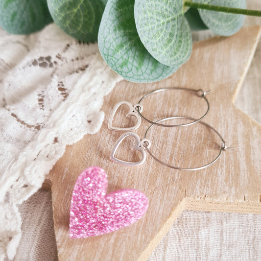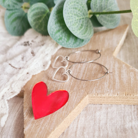 Polymeerklei oorbellen met neon oranje bedel en plex hartje