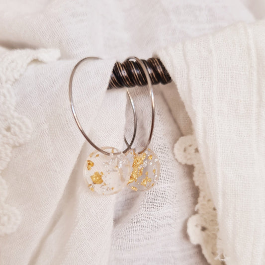 Zilveren ringen met transparante resin bedel met goud en zilverfolie