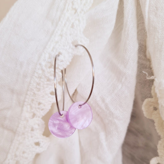 Zilverkleurige oorringen met multicolor hanger in resin