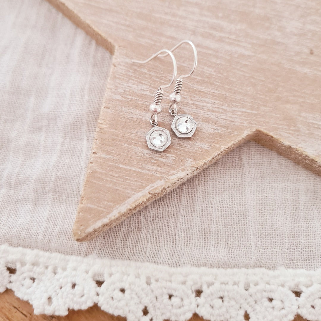 Zilverkleurige geboortesteenoorbellen met transparante steen voor April