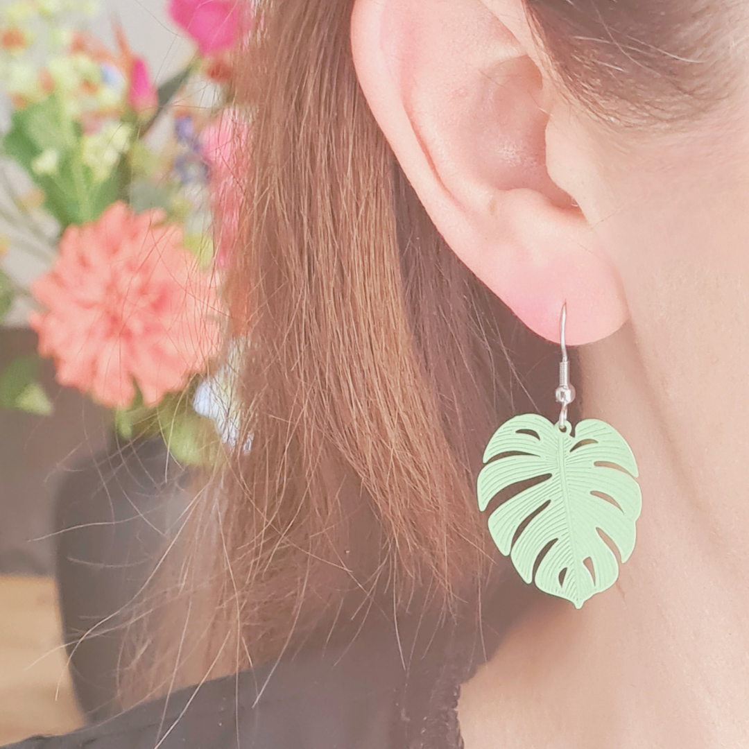 Groene blad oorbellen die direct zomerse energie uitstralen.