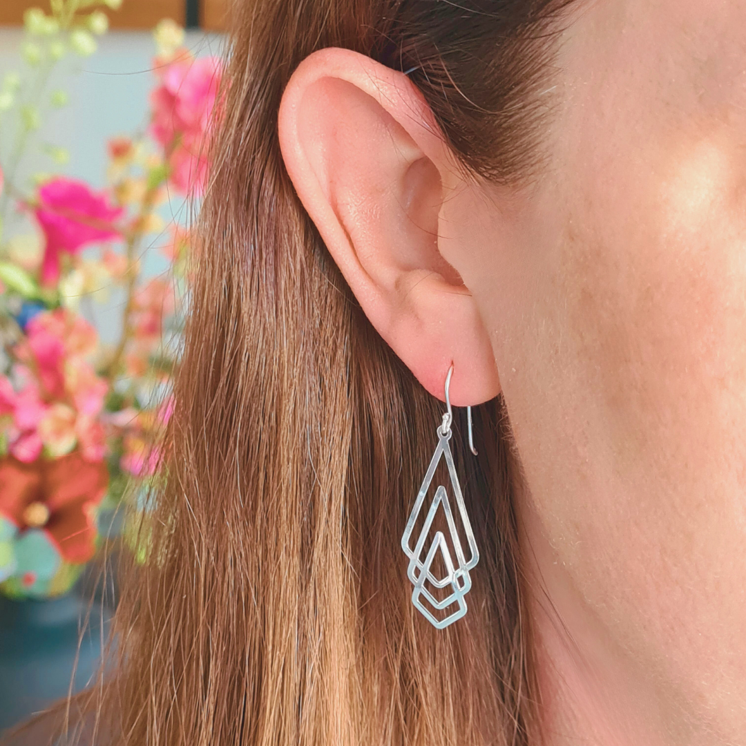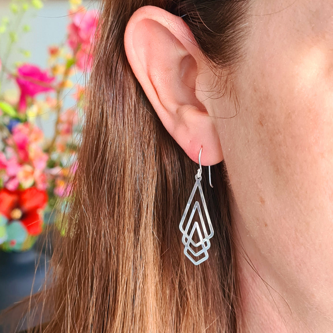Zilveren oorbellen met geometrisch motief