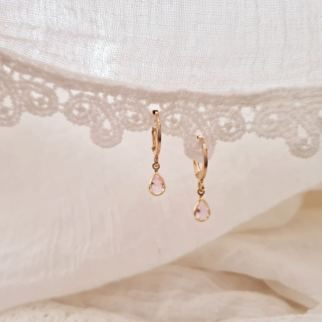 Deze goudkleurige ringetjes met lichtroze steentje zijn een elegante keuze die je elke dag plezier geeft.