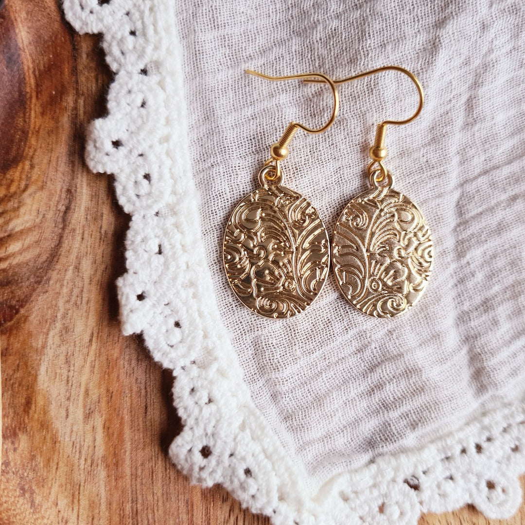 Goudkleurige ovale oorbellen met reliëfpatroon