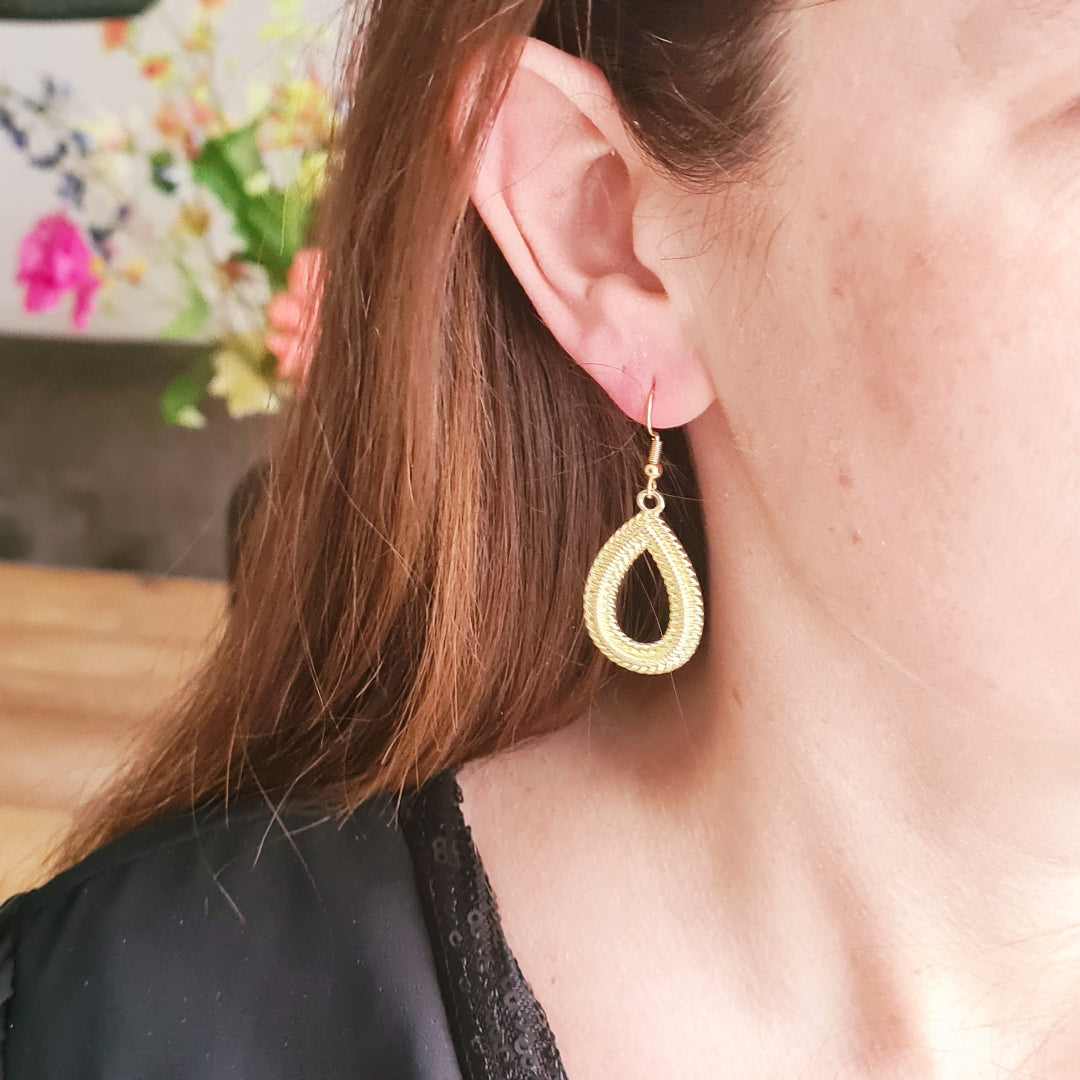 Tijdloos en elegant. Deze goudkleurige druppelvormige oorbellen voegen moeiteloos een vleugje klasse toe aan elke look. De zachte glans en verfijnde afwerking maken ze geschikt voor zowel dagelijks gebruik als feestelijke momenten. Door hun lichte gewicht draag je ze comfortabel, de hele dag door.