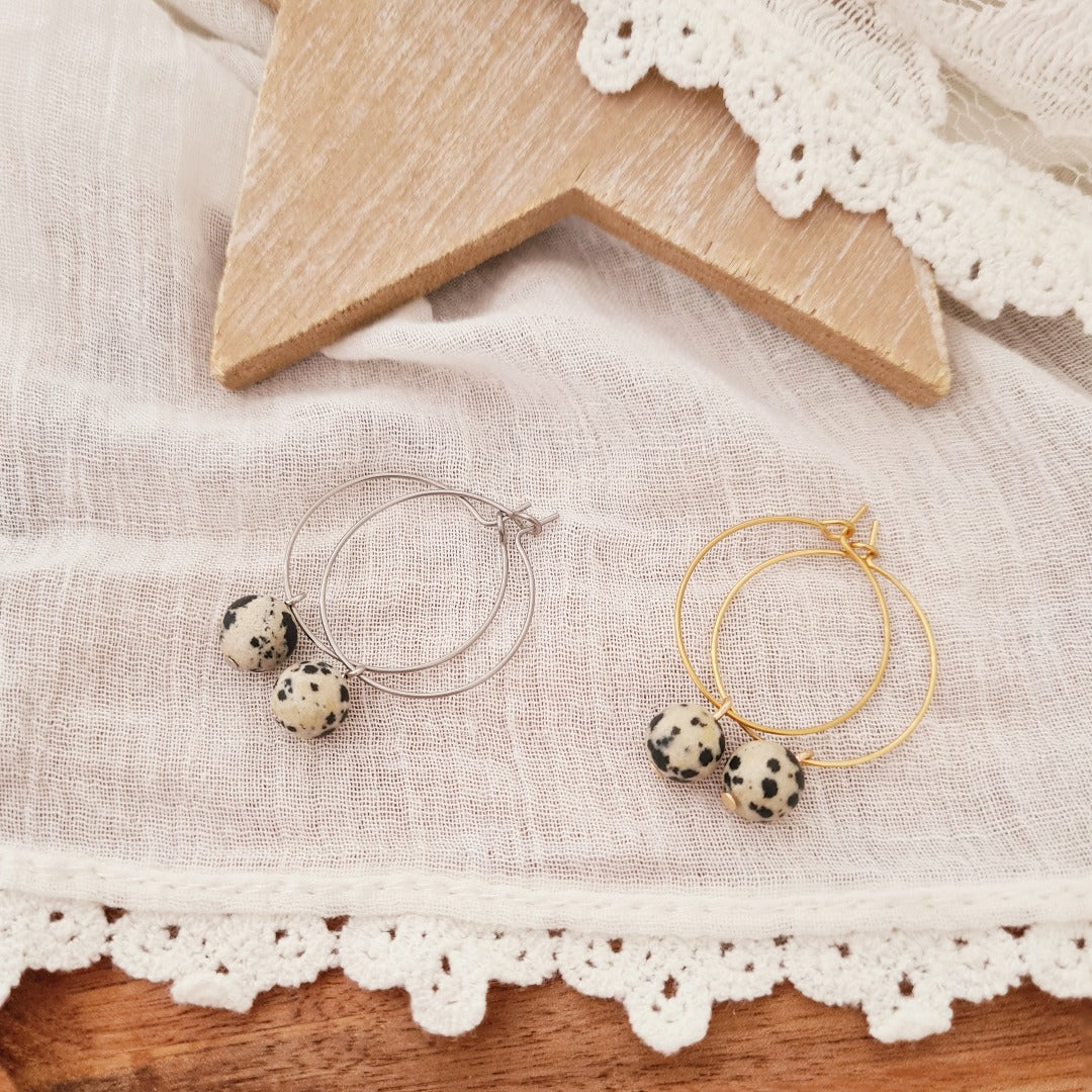 Onze edelsteenringen van stainless steel zijn er in verschillende soorten en maten. Deze Dalmatian Jaspis ringen zijn superleuk en vormen een speciale unieke toevoeging aan jouw oorbellenrekje! Ze fleuren je casual outfit helemaal op maar passen ook supermooi bij jouw favoriete (effen) jurkje!