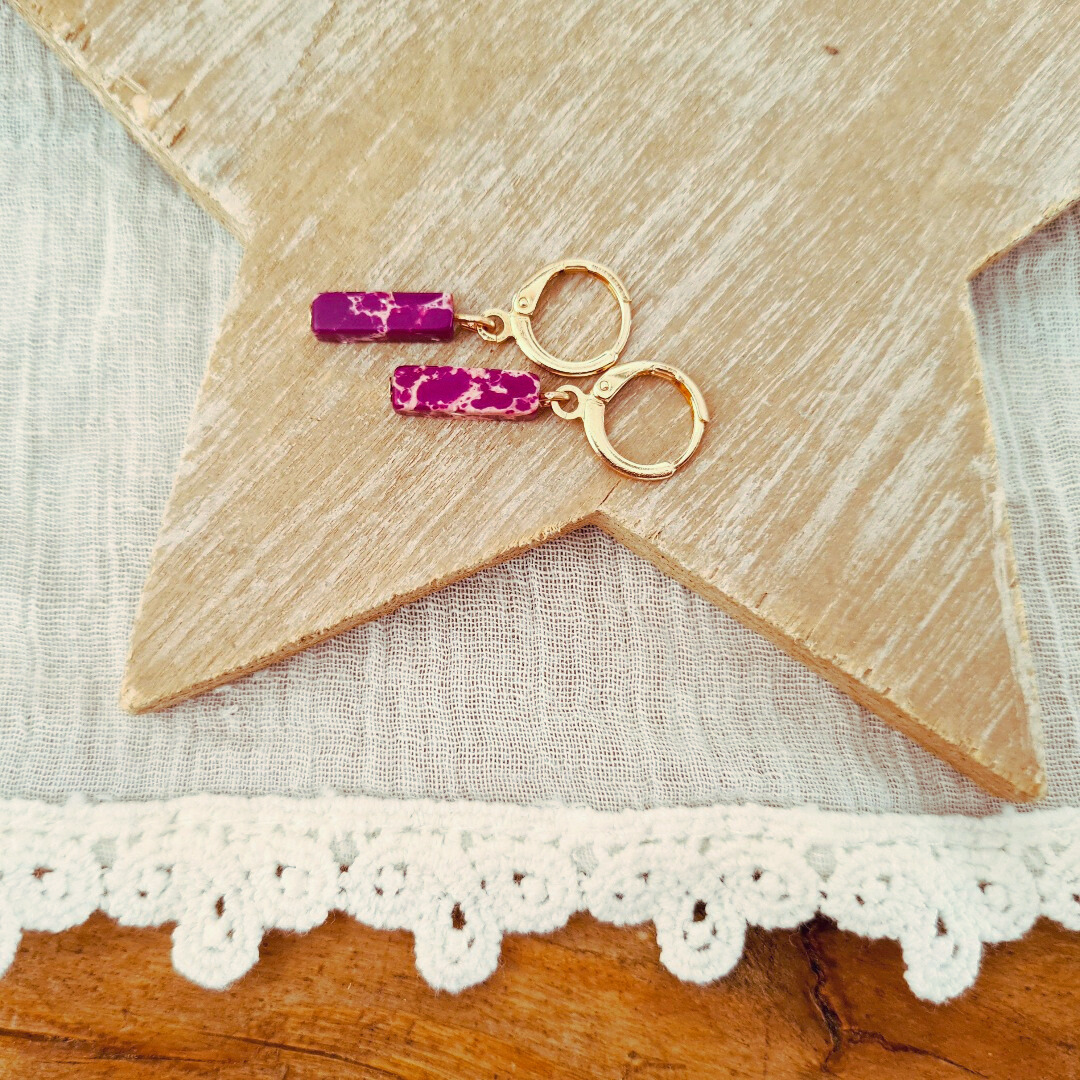 Deze oorbellen zijn klein van stuk, maar groots in uitstraling. Het paars geaderde steentje geeft direct warmte en diepte aan je look, terwijl de goudkleurige ringetjes zorgen voor een elegante afwerking. Ze dragen licht en comfortabel, en voegen net dat beetje kleur toe aan je outfit – zonder overheersend te zijn.