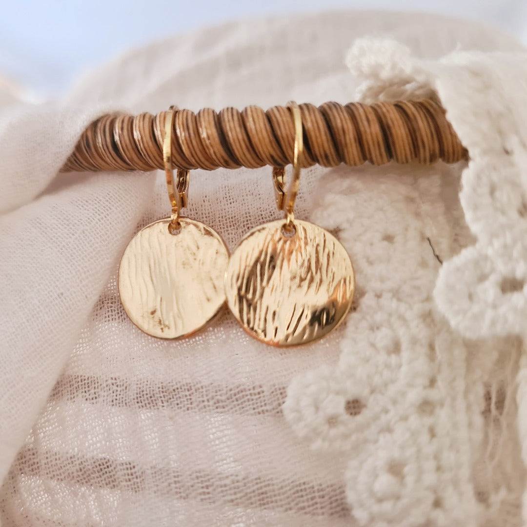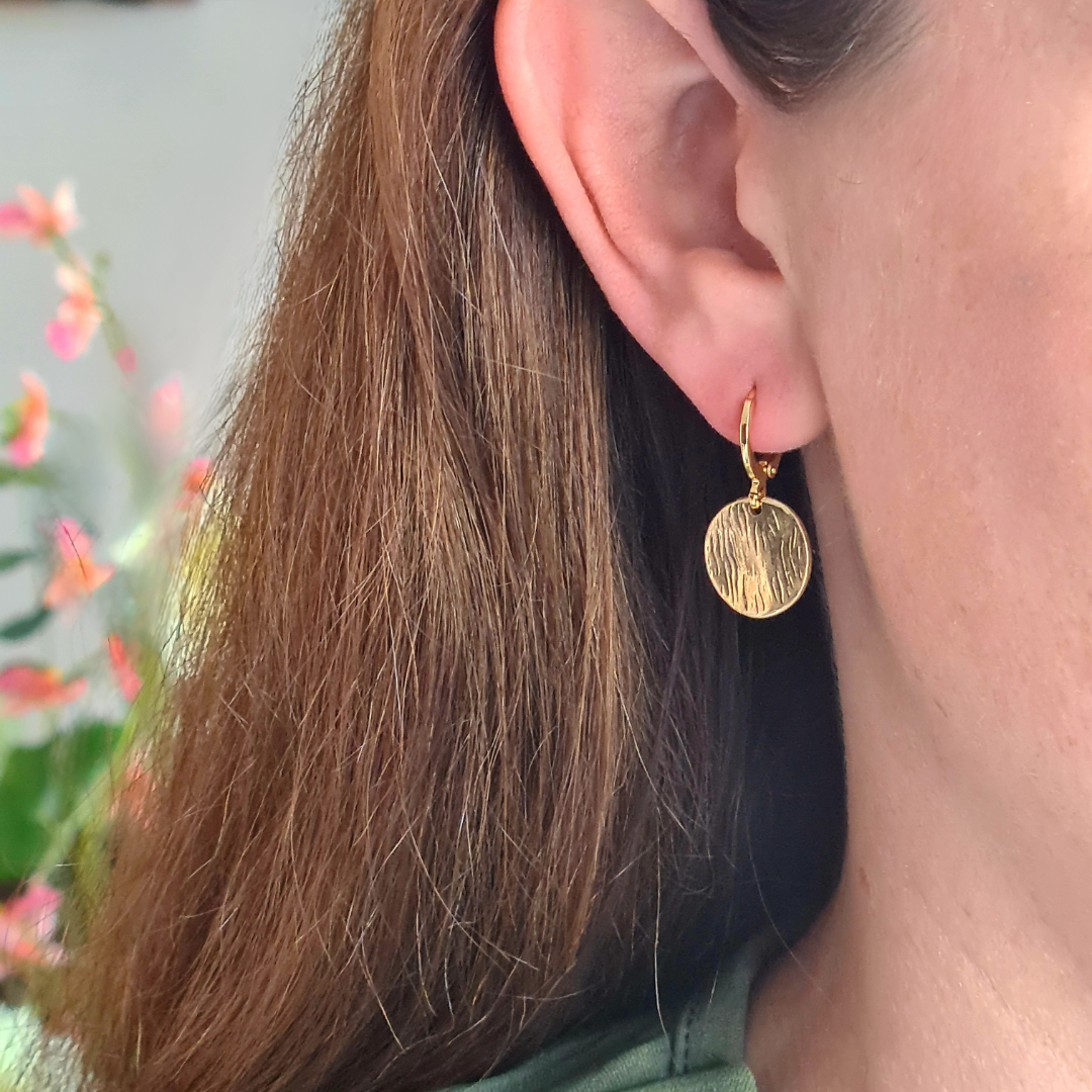 Geef je outfit een stijlvolle boost met deze elegante gouden ringetjes met munt. De ronde hanger in warme goudtint zorgt voor een klassieke, vrouwelijke look. Licht en comfortabel, ideaal voor dagelijks gebruik en bijzondere momenten.