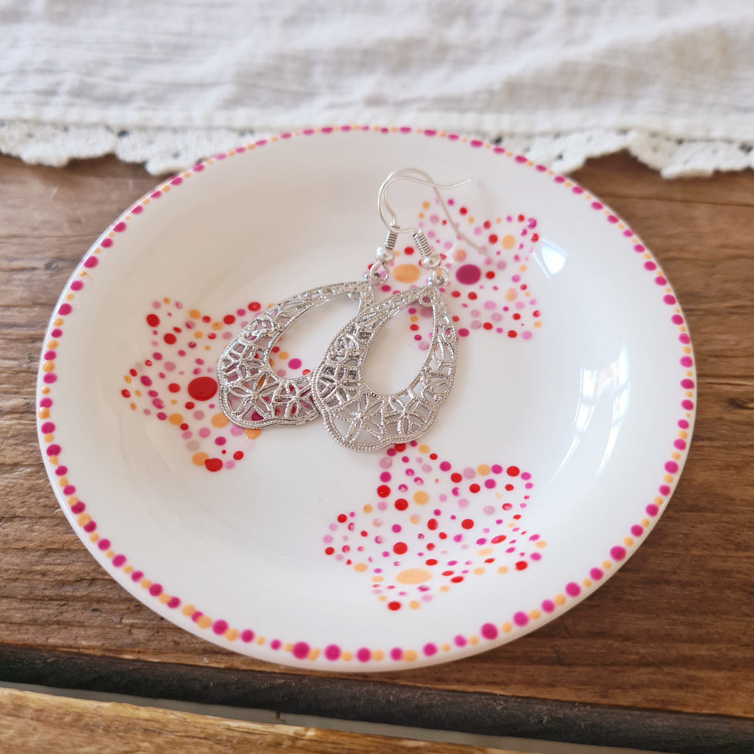 Bijzonderheden: Elk schaaltje is uniek, handgemaakt, schaaltje wordt geleverd zonder oorbellen, deze zijn slechts ter illustratie voor de foto.